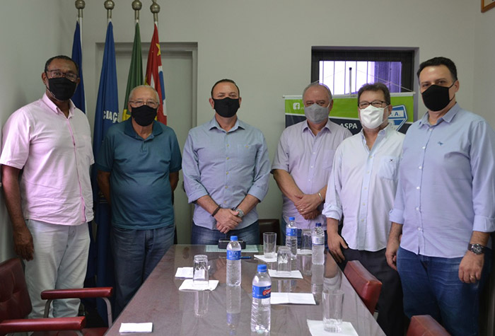 Diretores da ASPA: Mário Camargo, Adilson Custódio, Paulo Dimas Cezar e Geraldo Marega recebem o prefeito Edinho Silva e o vice Damiano Neto: uma forma da entidade discutir as políticas públicas da cidade.