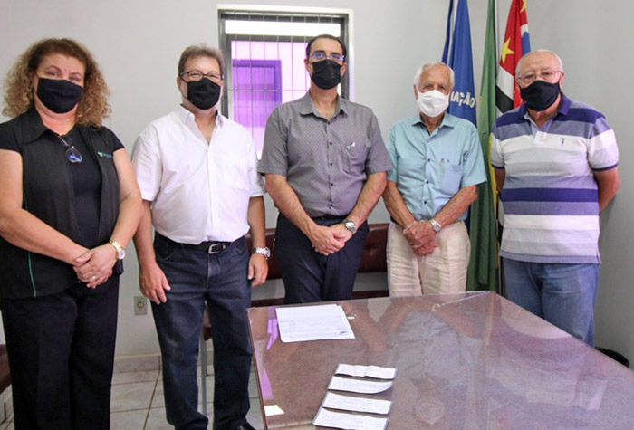Diretores da Aspa com os parceiros Rita Faccio e Sérgio Fornazari, do Sicoob e DrogaVen