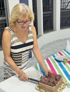 Aniversariante Sueli Aparecida Baptista, com direito a bolo no coquetel