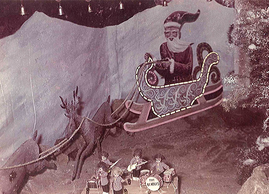O primeiro presépio em 1960 nasceu de forma bem simples. Observem que na imagem aparece o conjunto The Beatles que começava a fazer sucesso em todo o mundo. Presença também de uma dançarina.
