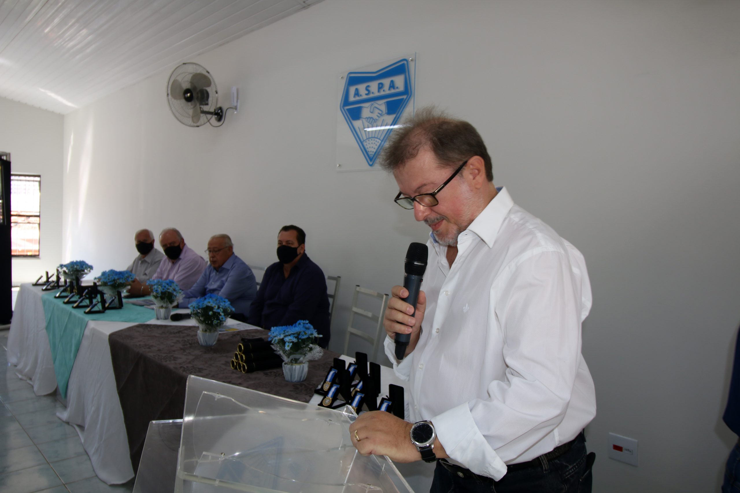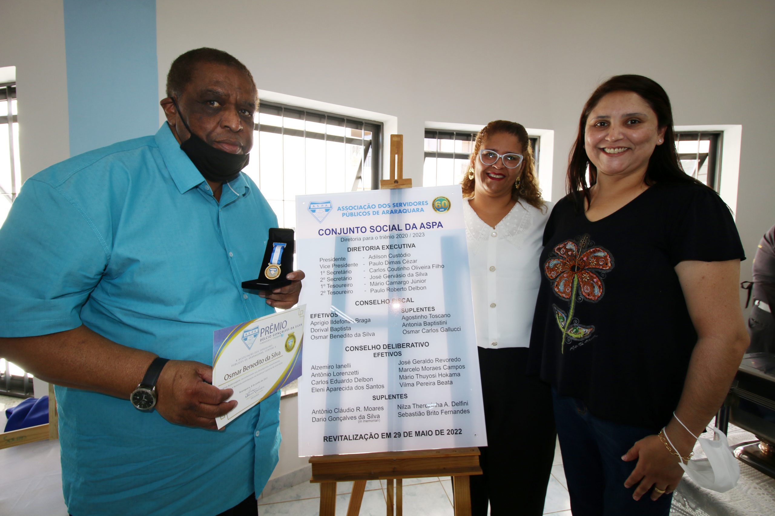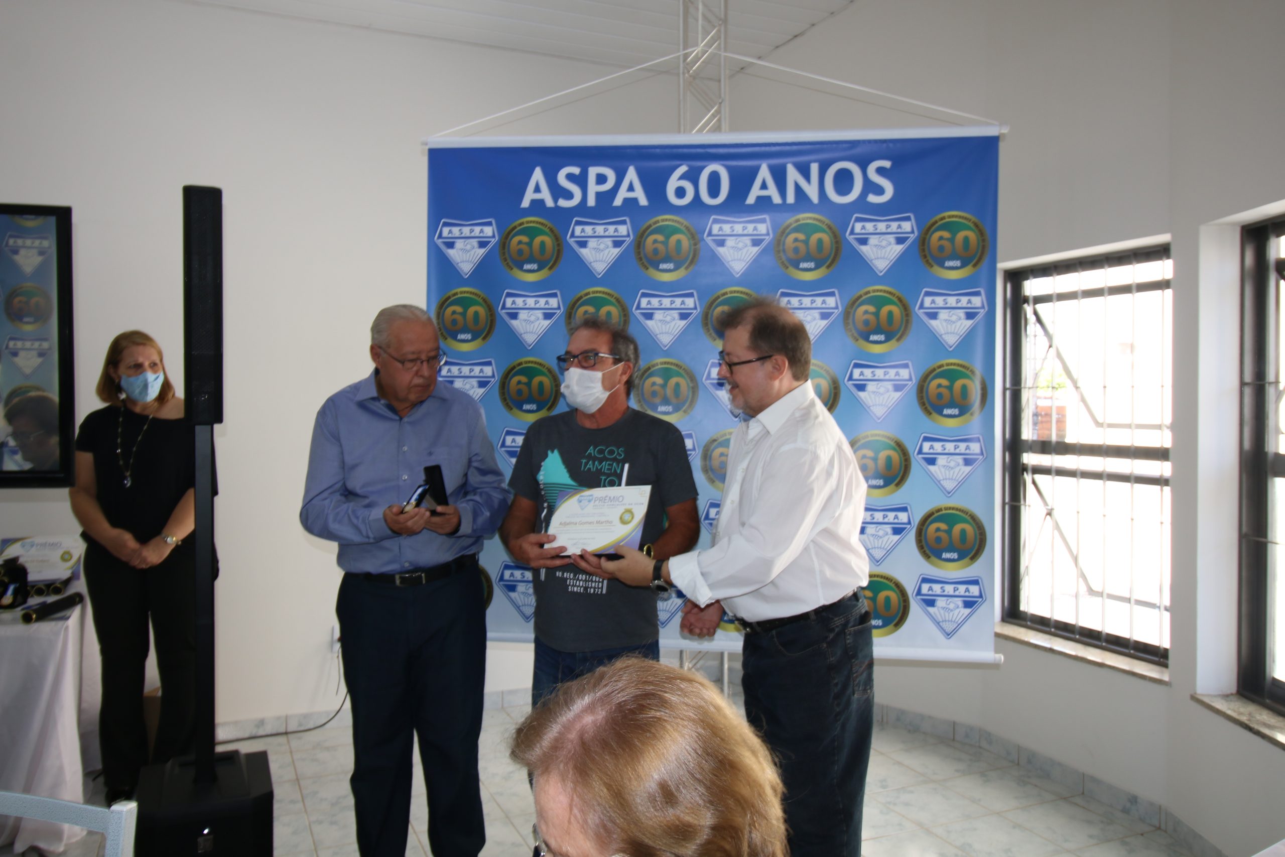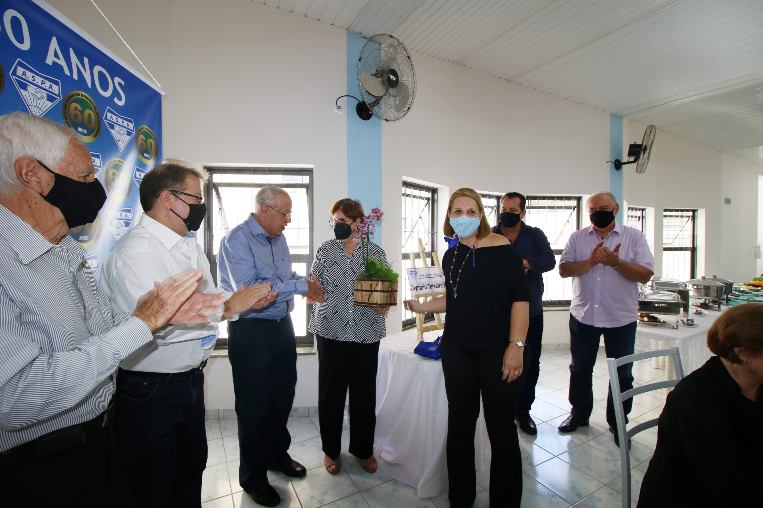 Diretores atuais e ex-diretores, além de colaboradores, parceiros e autoridades participaram na manhã do dia 04 de junho das comemorações do 60° aniversário de fundação da ASPA, entidade que congrega servidores públicos federais, estaduais e municipais. O evento serviu para inauguração do Conjunto Social Olympio Teixeira Filho, que foi presidente da associação.