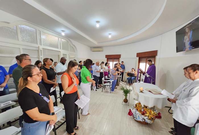 O Padre Cassiano, da Paróquia Nossa Senhora Aparecida, celebrou a missa na Capela Nossa Senhora do Leite, com a presença da diretoria da Fundação, servidores e convidados